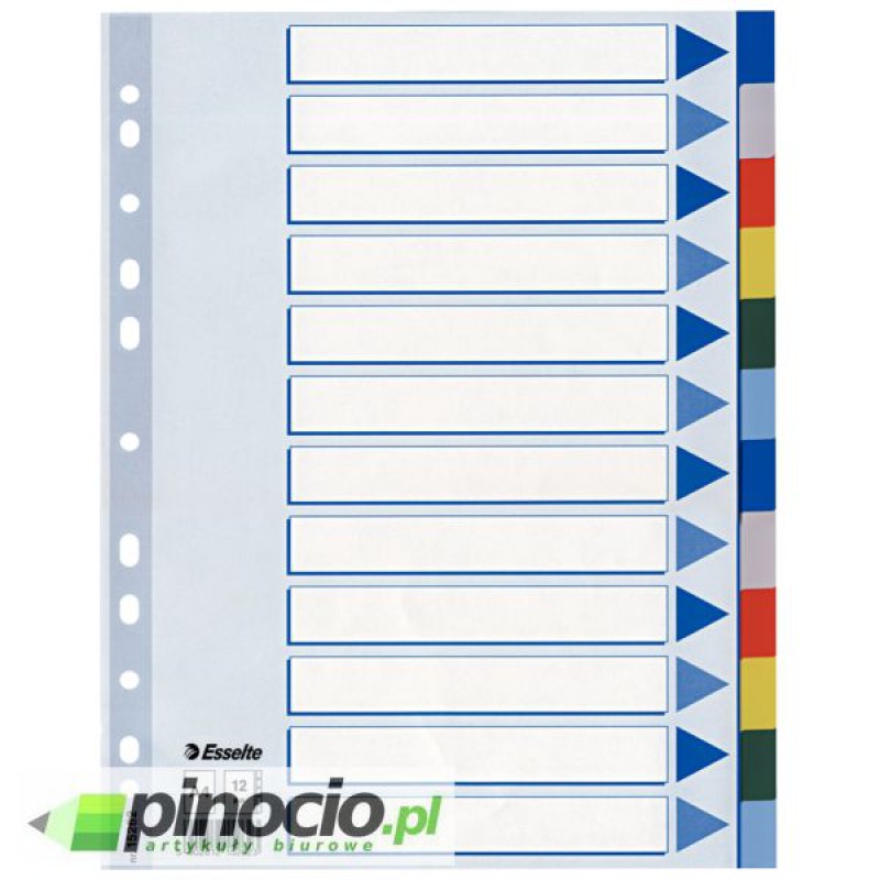 Przekładki plastikowe z kolorowymi indeksami Esselte A4 12 kart 15262