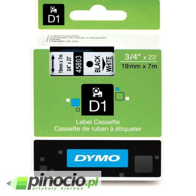 Taśma Dymo D1 19mm x 7m biała/czarny nadruk